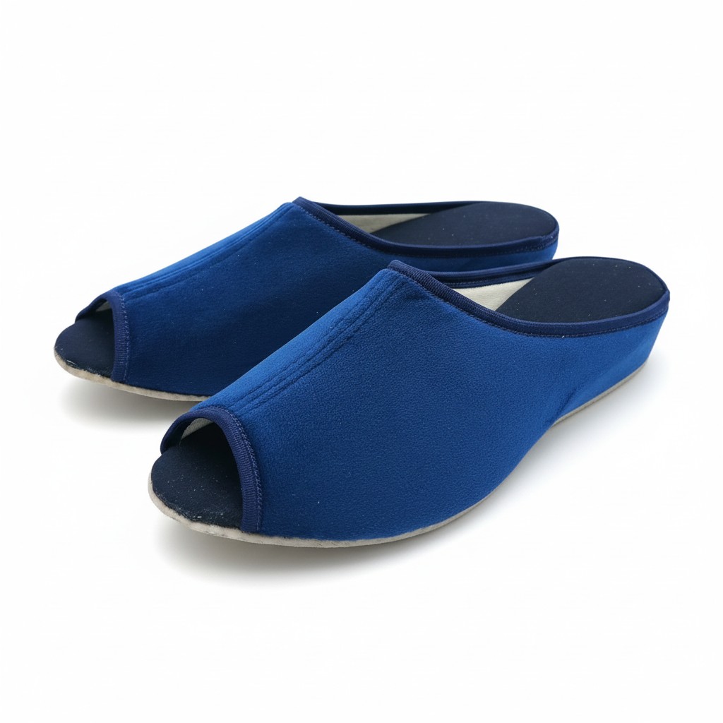 Pantofle zostały wykonane z przyjemnego w dotyku aksamitu, który dobrze dopasowuje się do stopy. Klin o wysokości 3 cm delikatnie unosi sylwetkę i poprawia komfort chodzenia – szczególnie podczas dłuższego użytkowania w domu
